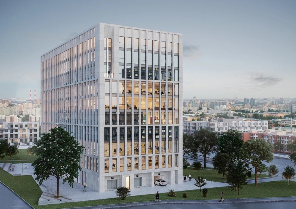Отдельно стоящее офисное здание в непосредственной близости от Садового кольца, что позволяет удовлетворить запрос крупных компаний на центральное расположение. Здание отличается четкой геометрией фасада, выполненного из натурального камня светлого цвета, с чередованием глухих участков и вертикальных оконных проемов.